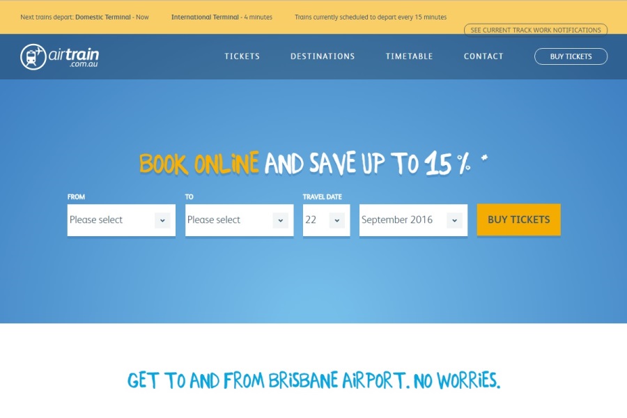 ブリスベン空港からブリスベン市街を通過し、ゴールドコースト方面までは Airtrainと呼ばれる鉄道サービスが利用できます。ピーク時は15分おき、それ以外は30分おきに運行しています。